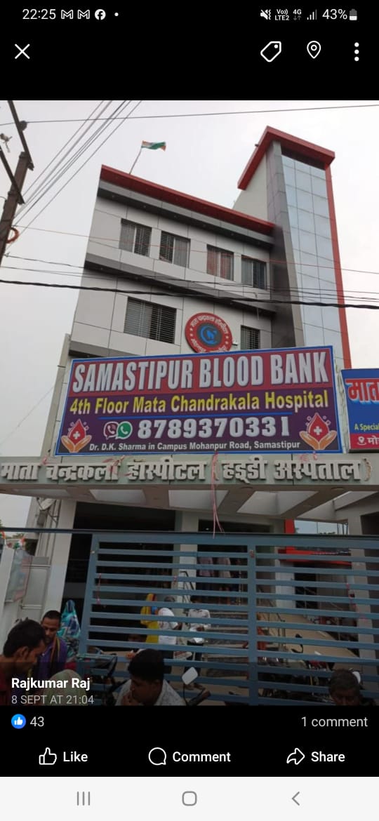 SAMASTIPUR BLOOD CENTRE is dedicated to saving lives by providing safe and reliable blood to hospitals and patients in need. Our team is committed to maintaining the highest standards of quality and safety in blood collection, testing, and distribution.